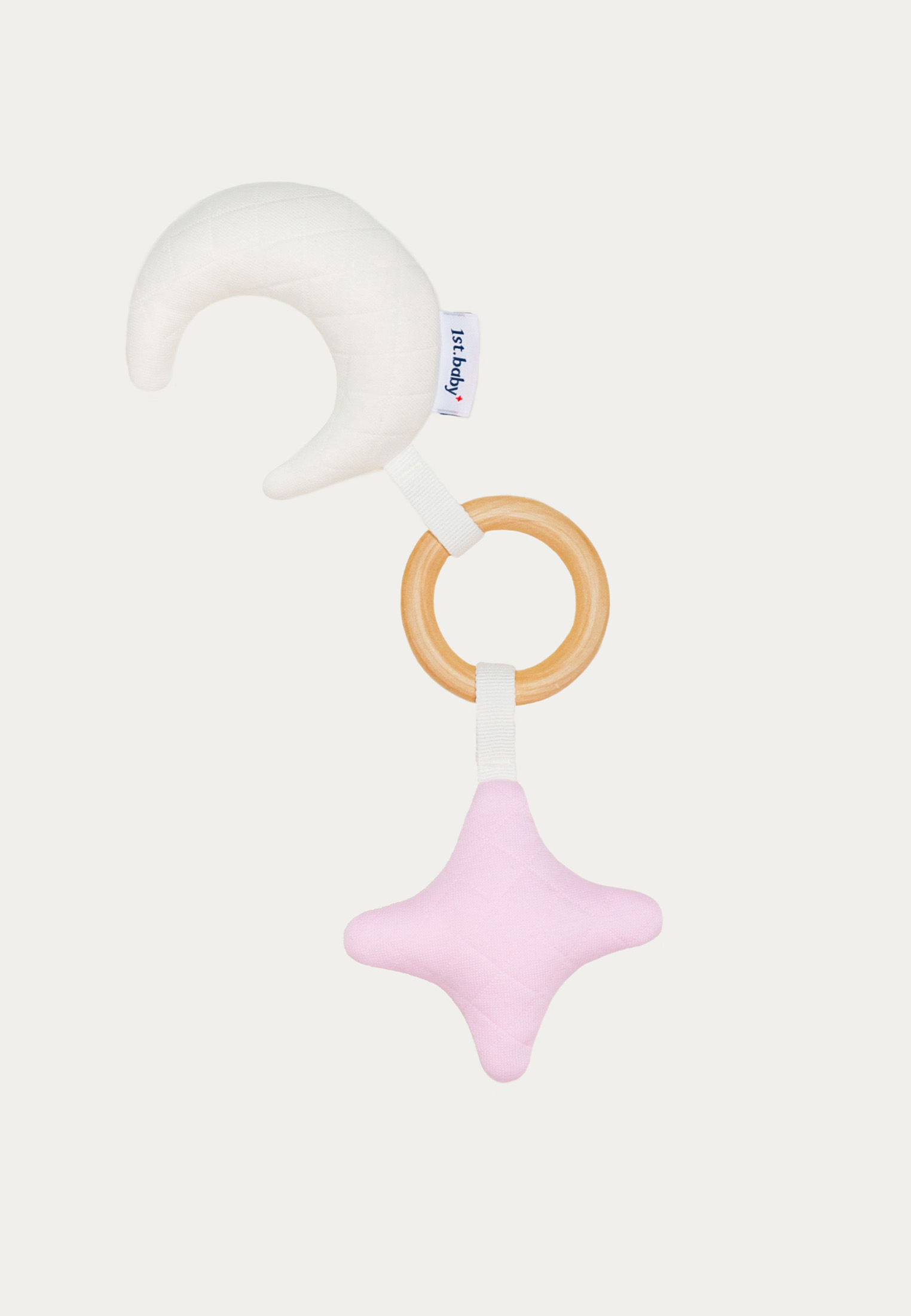 Декоративная мягкая игрушка «Keep the dream» выполнена из мягкого трикотажа в виде месяца и звезды. Кольцо игрушки сделано из натурального дерева. Эта игрушка идеально дополнит плед «First hug» и подушку «Glow», также выполненные в форме звезды и в аналогичной цветовой гамме.
