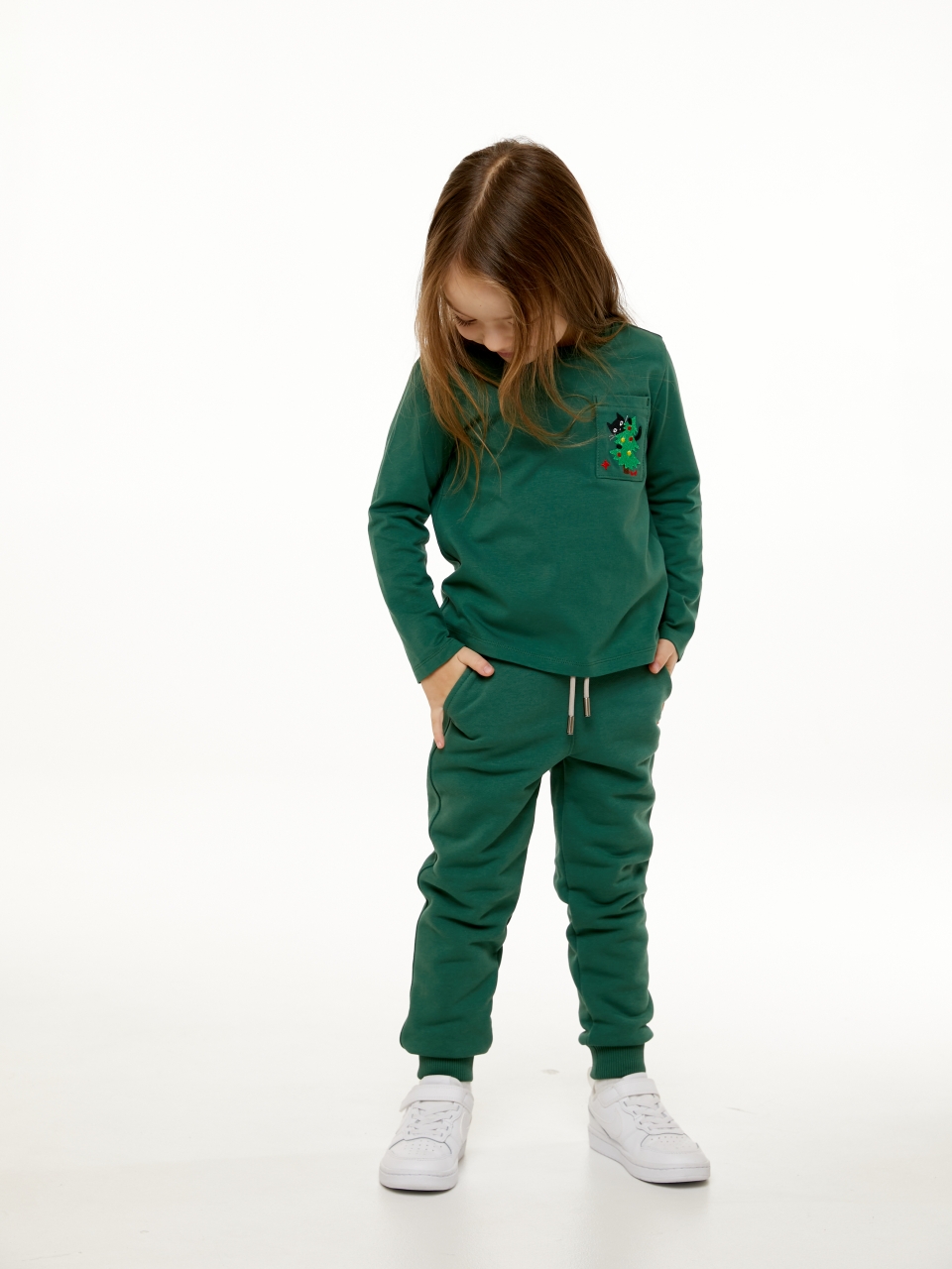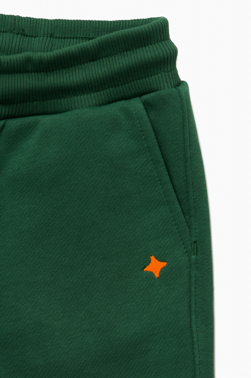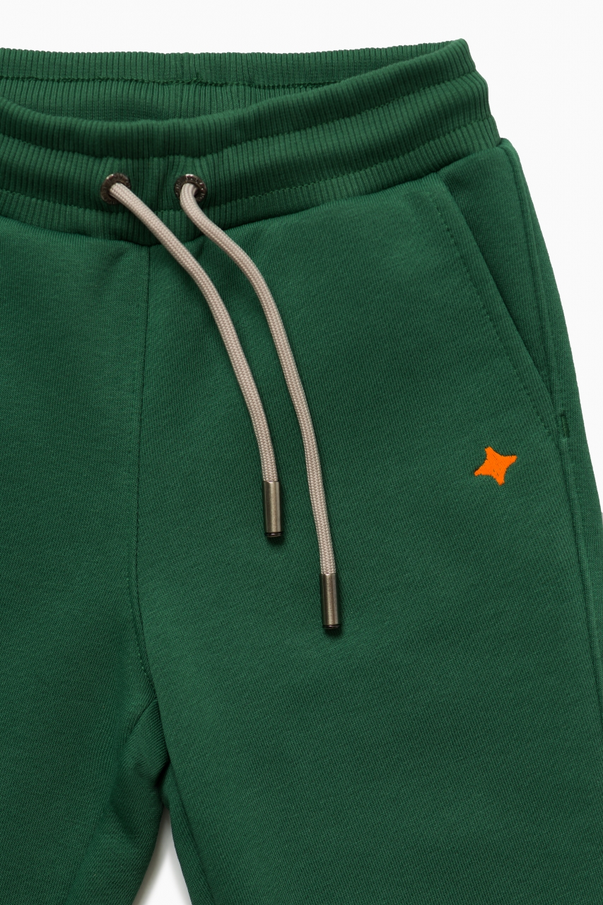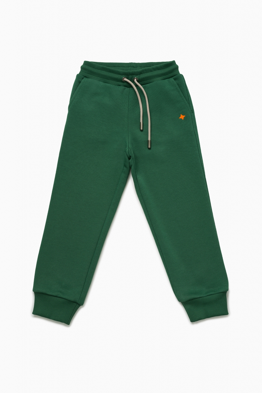 Базовые спортивные брюки в тёмно-зелёном цвете выполнены из премиального трикотажа футер петля. Идеальный крой, подойдет как на мальчика, так и на девочку. Мягкий пояс выполнен из трикотажной резинки и регулируется шнурком. Два кармана по бокам, манжеты выполнены из рельефной трикотажной резинки для более плотного прилегания.