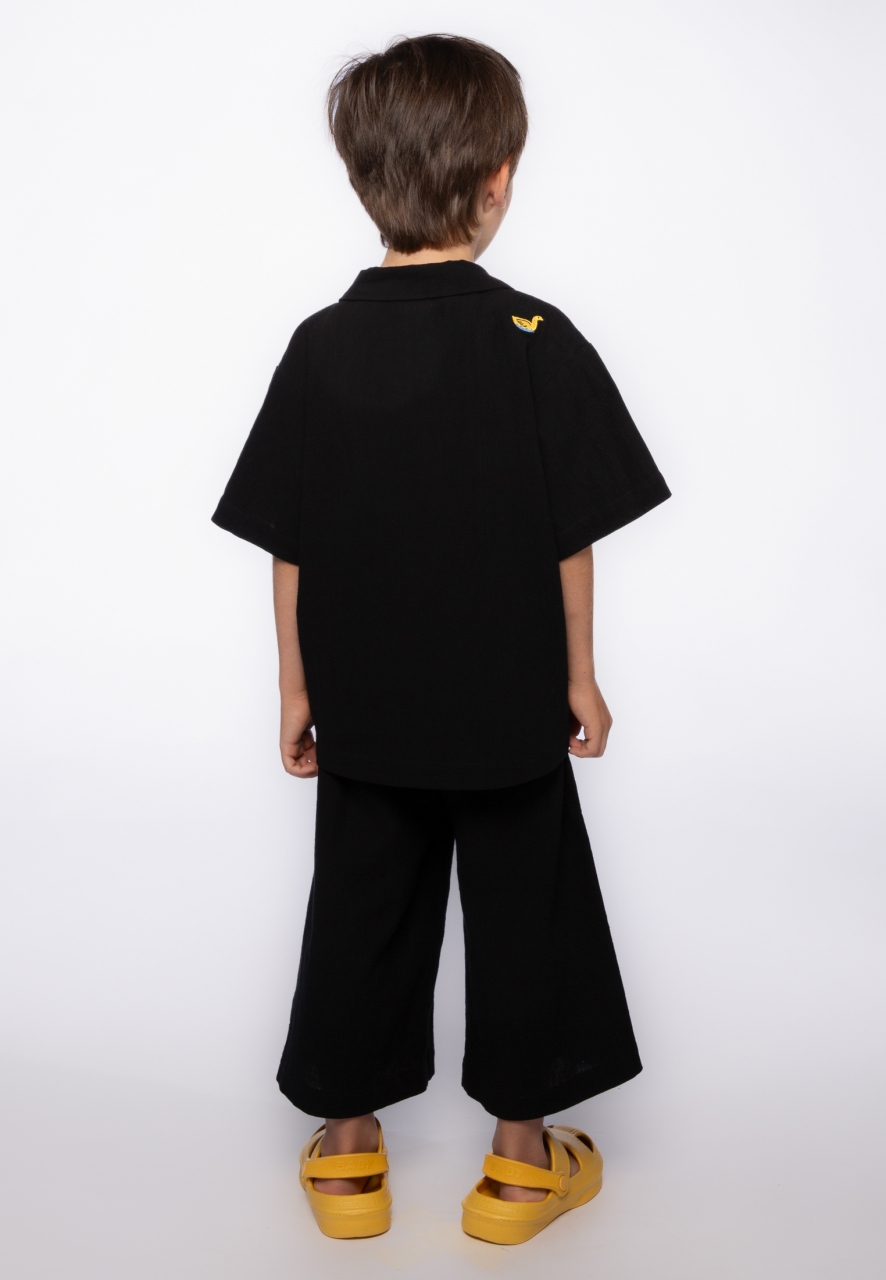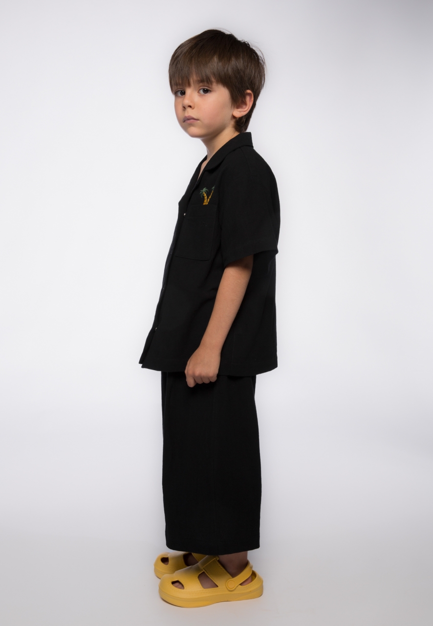 Укороченные брюки из невесомого хлопка будут незаменимы для жарких путешествий. Они занимают минимальное количество места в чемодане, дополняются всеми верхами из капсулы и базовыми моделями 1st. Выполнены в голубом и черном цветах, дополнены вышивкой-принтом на заднем кармане, который вам напомнит не забыть захватить spf с собой!