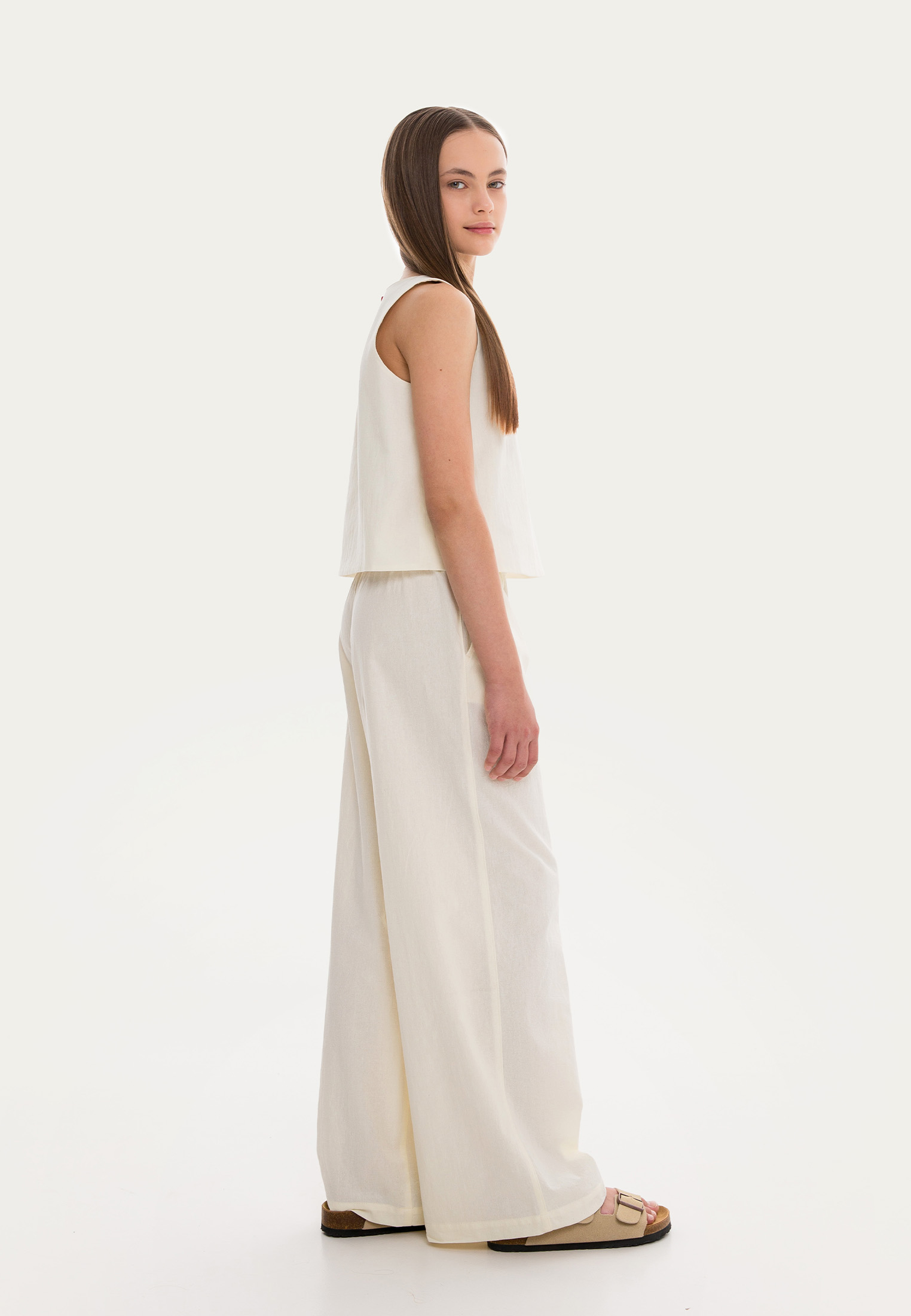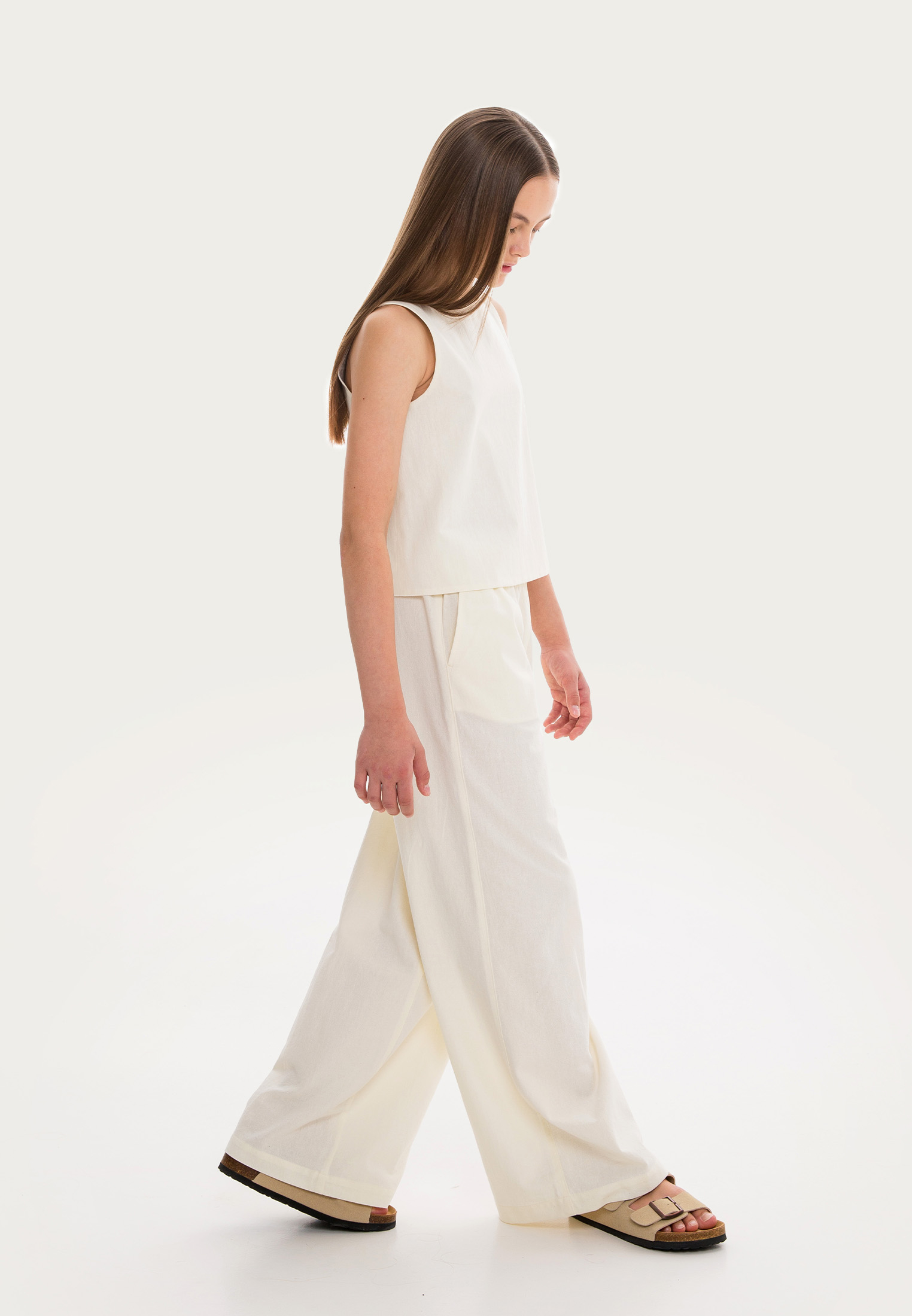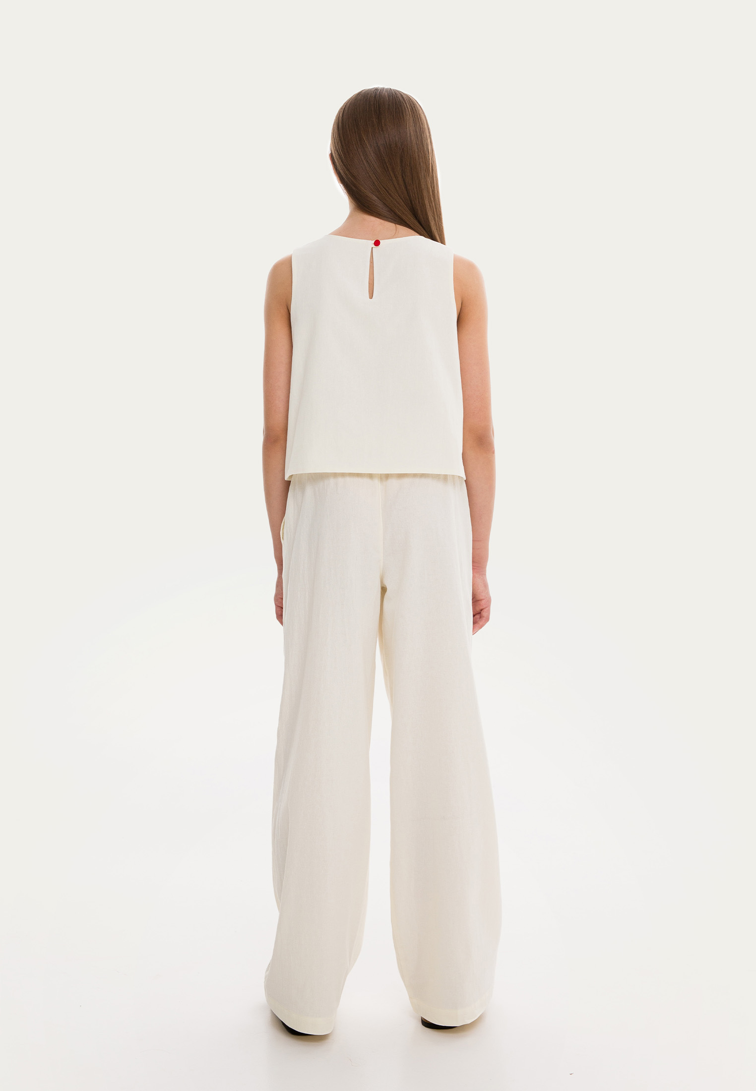 Прямые брюки на мягком эластичном поясе. Модель с комфортной посадкой дополнена практичными карманами в боковых швах. Универсальный вариант для городских будней и отпуска. Составьте комплект с рубашками «Fjord» и «Coast», а также топом «Jetty» из нашей коллекции.