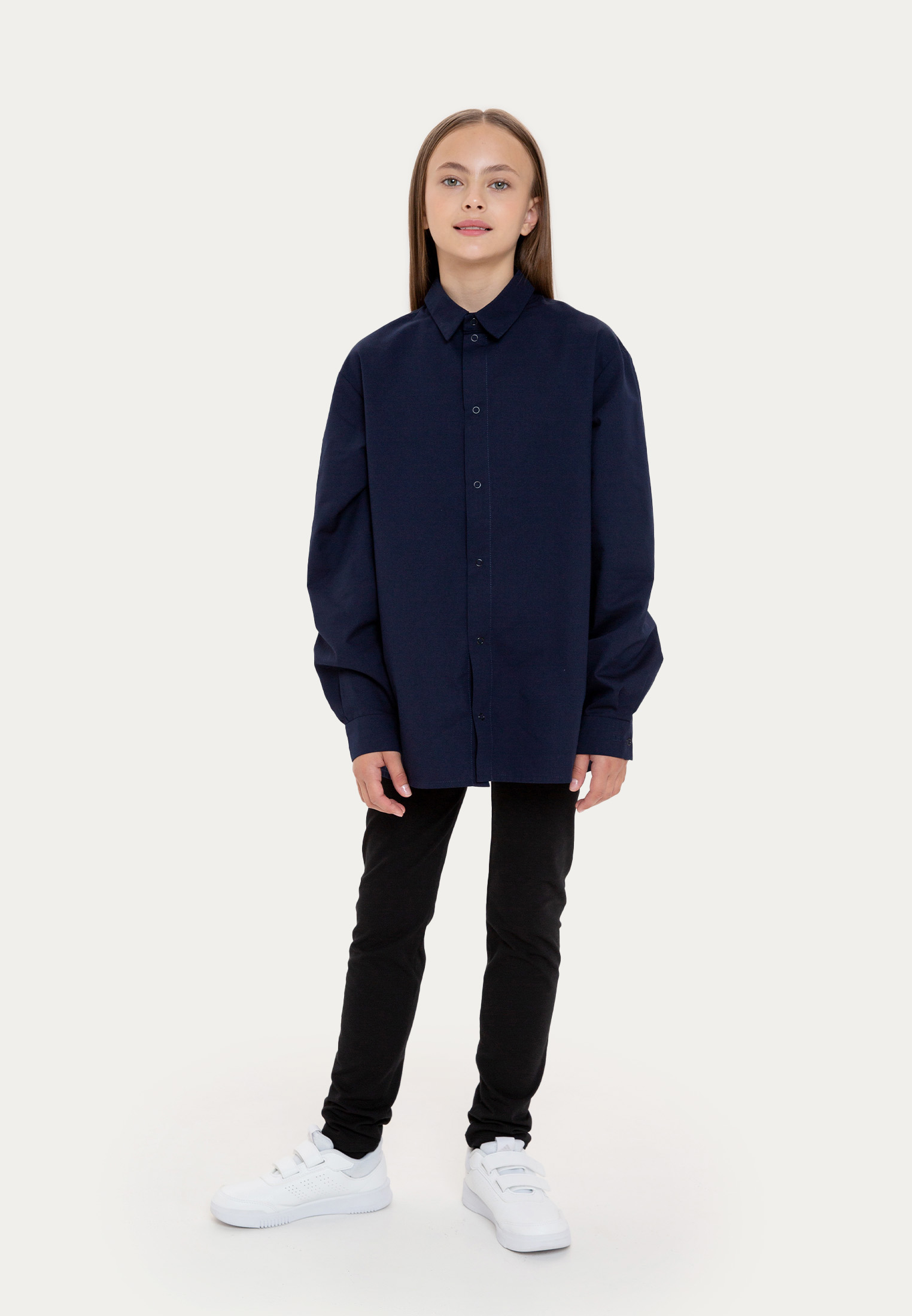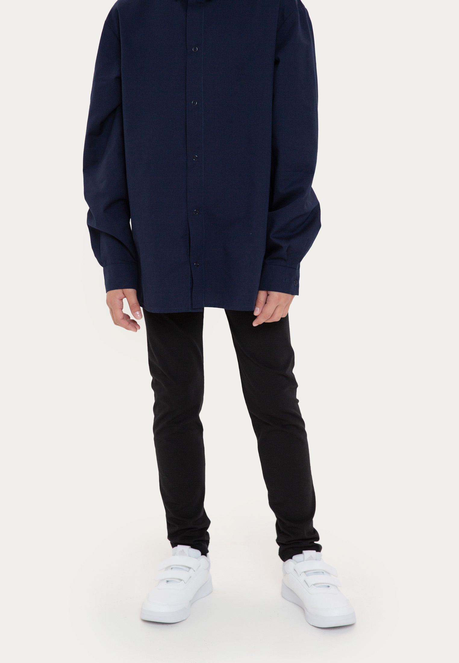 Классическая модель 1st. выполнена в черном и темно-синем цветах. Поверхность ткани украшает принт в цвет. В отличие от классических леггинсов, эта модель свободная в посадке и не облегает ноги, что позволяет им стать идеальным компаньоном для удлиненных свитшотов, рубашек и жилета из школьной капсулы.