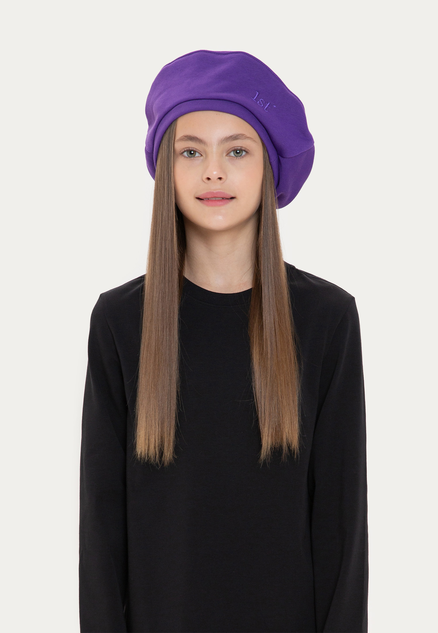 Классический берет выполнен из мягкого футера. Модель украшает вышивка 1st. в цвет ткани.
