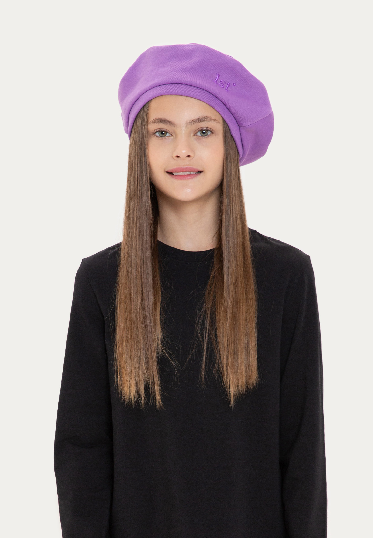 Классический берет выполнен из мягкого футера. Модель украшает вышивка 1st. в цвет ткани.