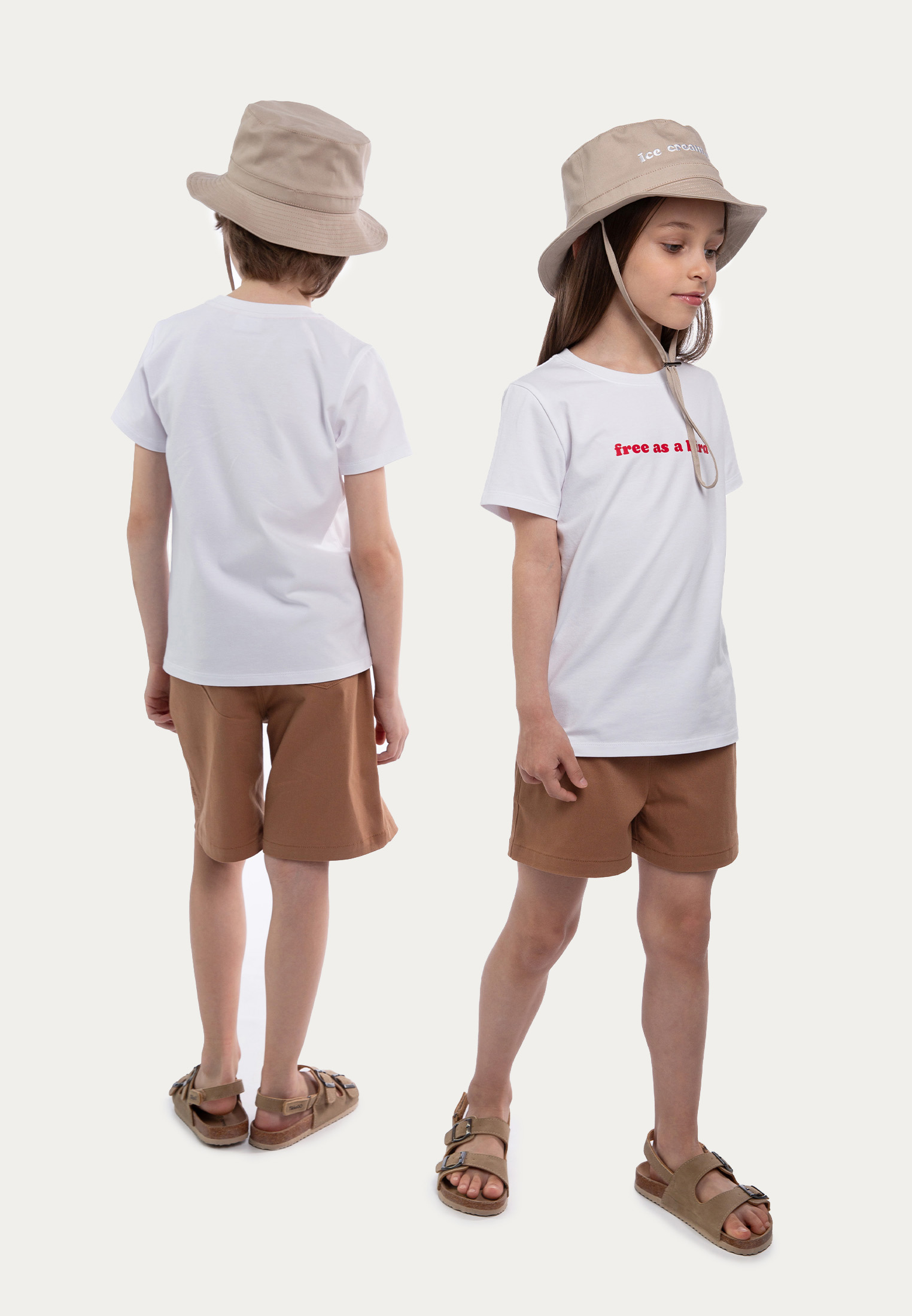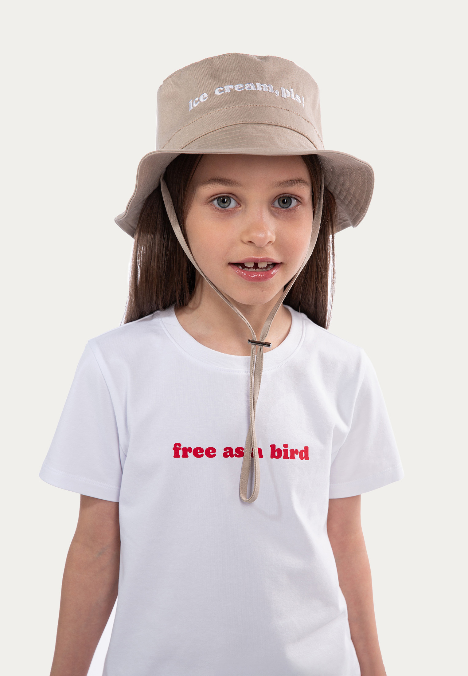Панама с надписью «Ice cream, pls!» — must-have аксессуар для жарких дней. Её широкие поля надёжно закрывают лицо от солнца, а лёгкий материал изделия не нагревается и позволяет коже дышать. Панама идеально сочетается с пляжными образами и городскими луками.