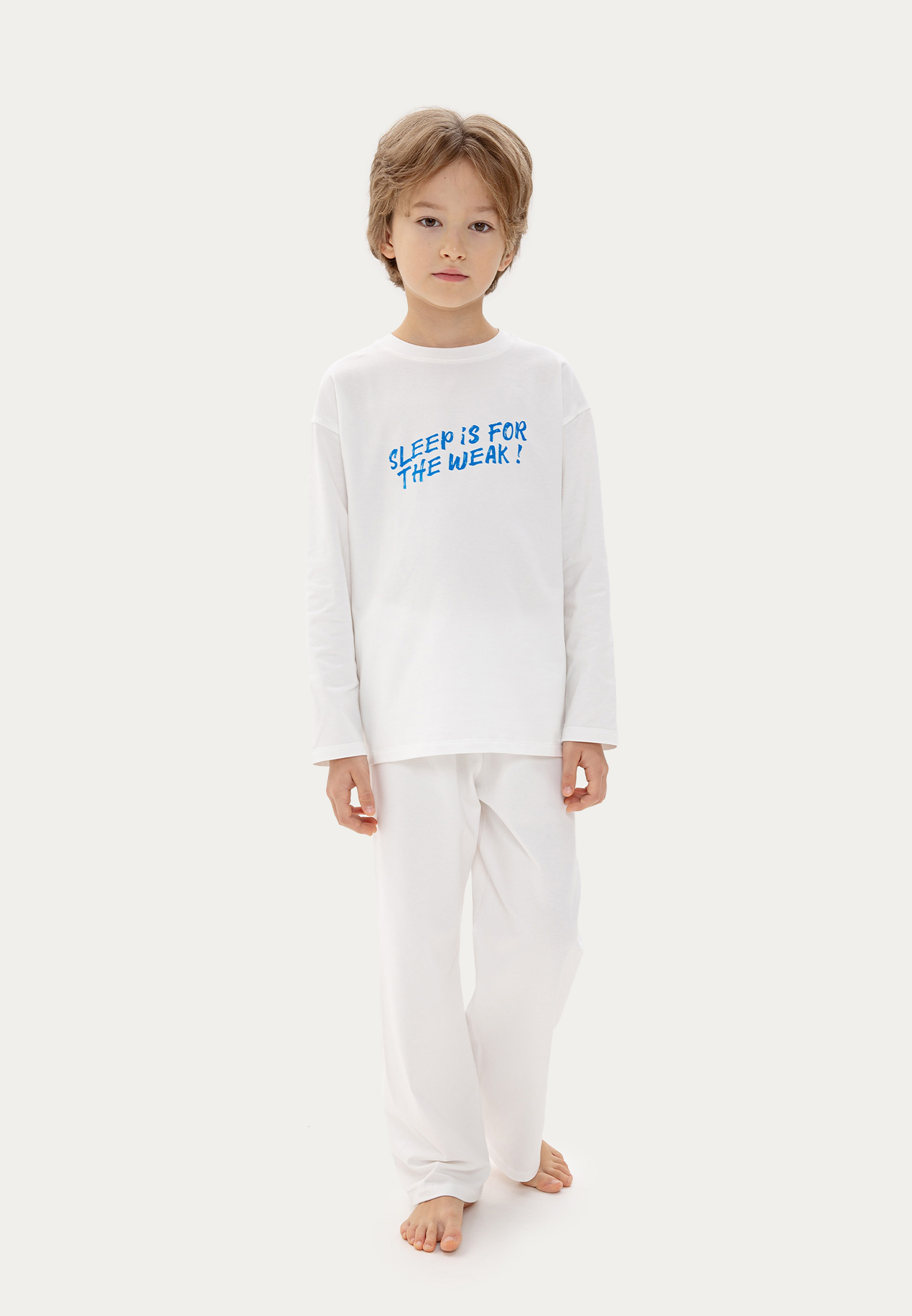 Пижама «No Sleep» для тех, кто знает, что лучшие моменты случаются после захода солнца. Мягкая, дышащая и с идеальной посадкой, она подойдёт для долгих утренних завтраков, игр и ленивых вечеров. Мы сшили пижаму из мягкого хлопка, лонгслив сделали свободным, прямые брюки дополнили удобным эластичным поясом, поэтому сон в пижаме от 1st. будет комфортным.
