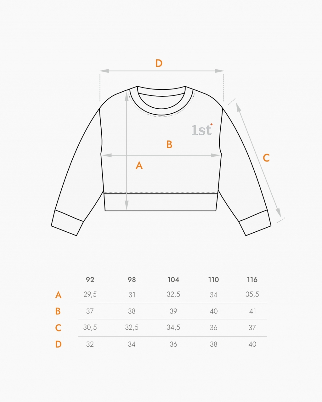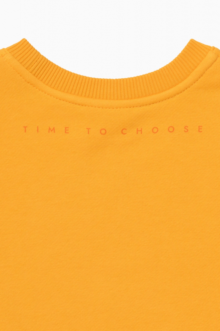 Слегка укороченный свитшот всегда добавит разнообразия в гардероб вашего ребенка. Мы специально сделали его не слишком коротким, чтобы он подходил и мальчикам, и девочкам, а также идеально сочетался со всеми низами. Сочный цвет манго, сделает ярче любой комплект, а аккуратно нанесенный принт 1st, всегда напомнит маленькому взрослому, что он номер один!