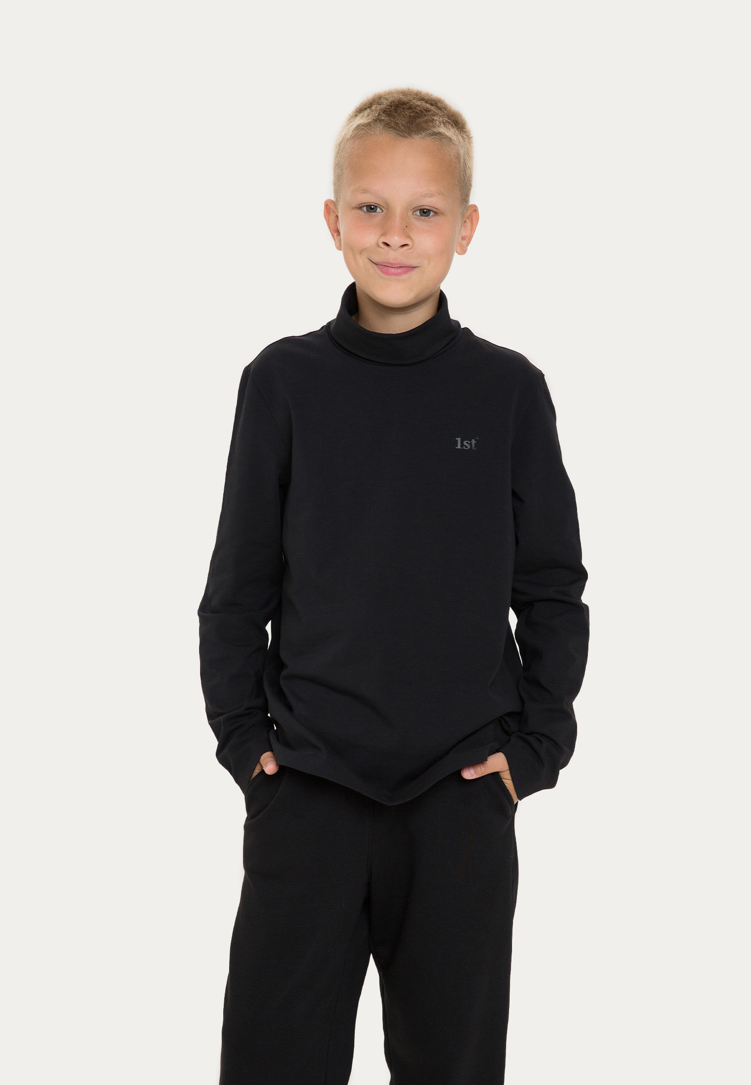 Классическая на вид водолазка максимально проработана в деталях. Например, пройма для головы немного увеличена, а воротник смотрится аккуратно как в сложенном, так и в расправленном виде. Изделие выполнено в черном, темно-синем, белом и голубом цветах и дополнено лаконичным логотипом в цвет.