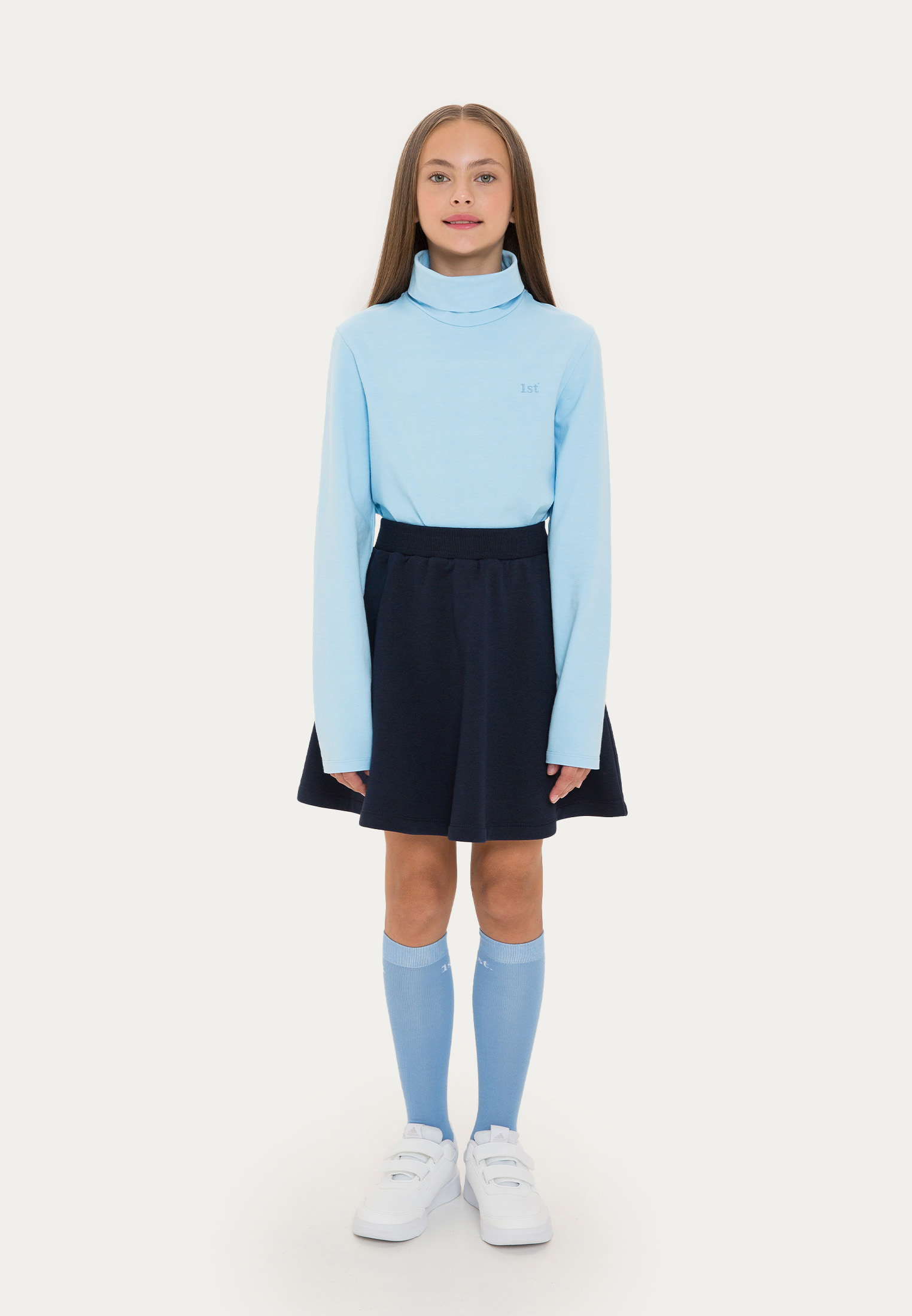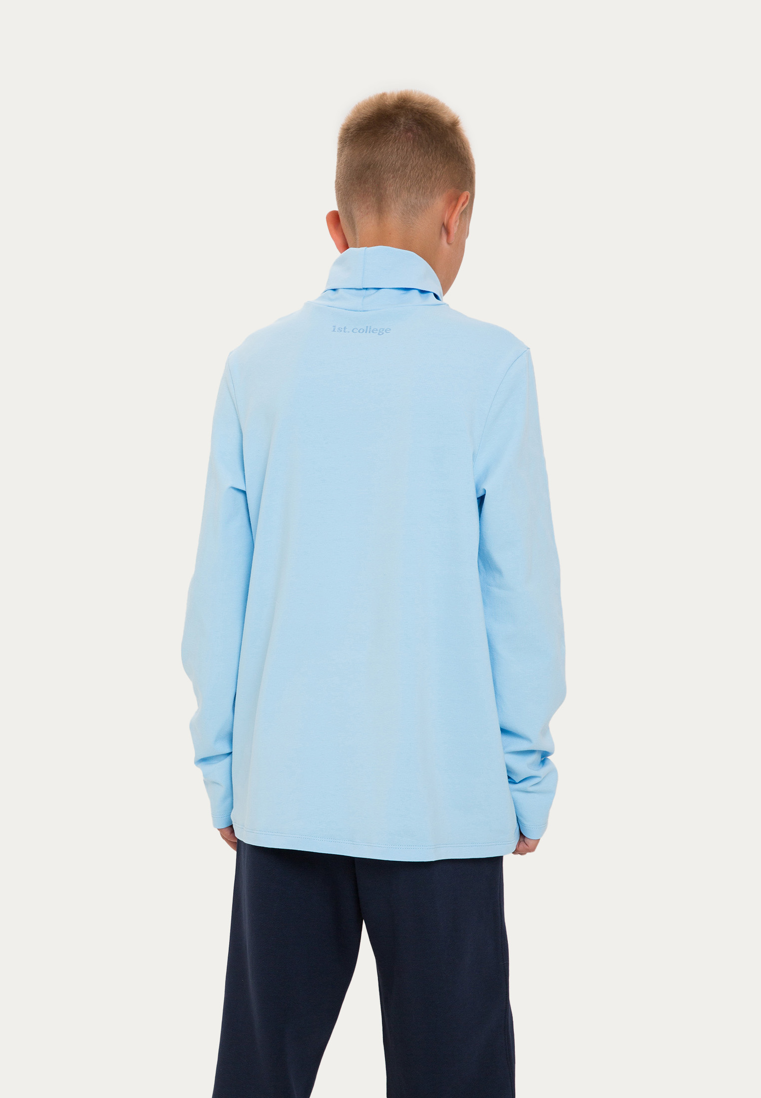 Классическая на вид водолазка максимально проработана в деталях. Например, пройма для головы немного увеличена, а воротник смотрится аккуратно как в сложенном, так и в расправленном виде. Изделие выполнено в черном, темно-синем, белом и голубом цветах и дополнено лаконичным логотипом в цвет.