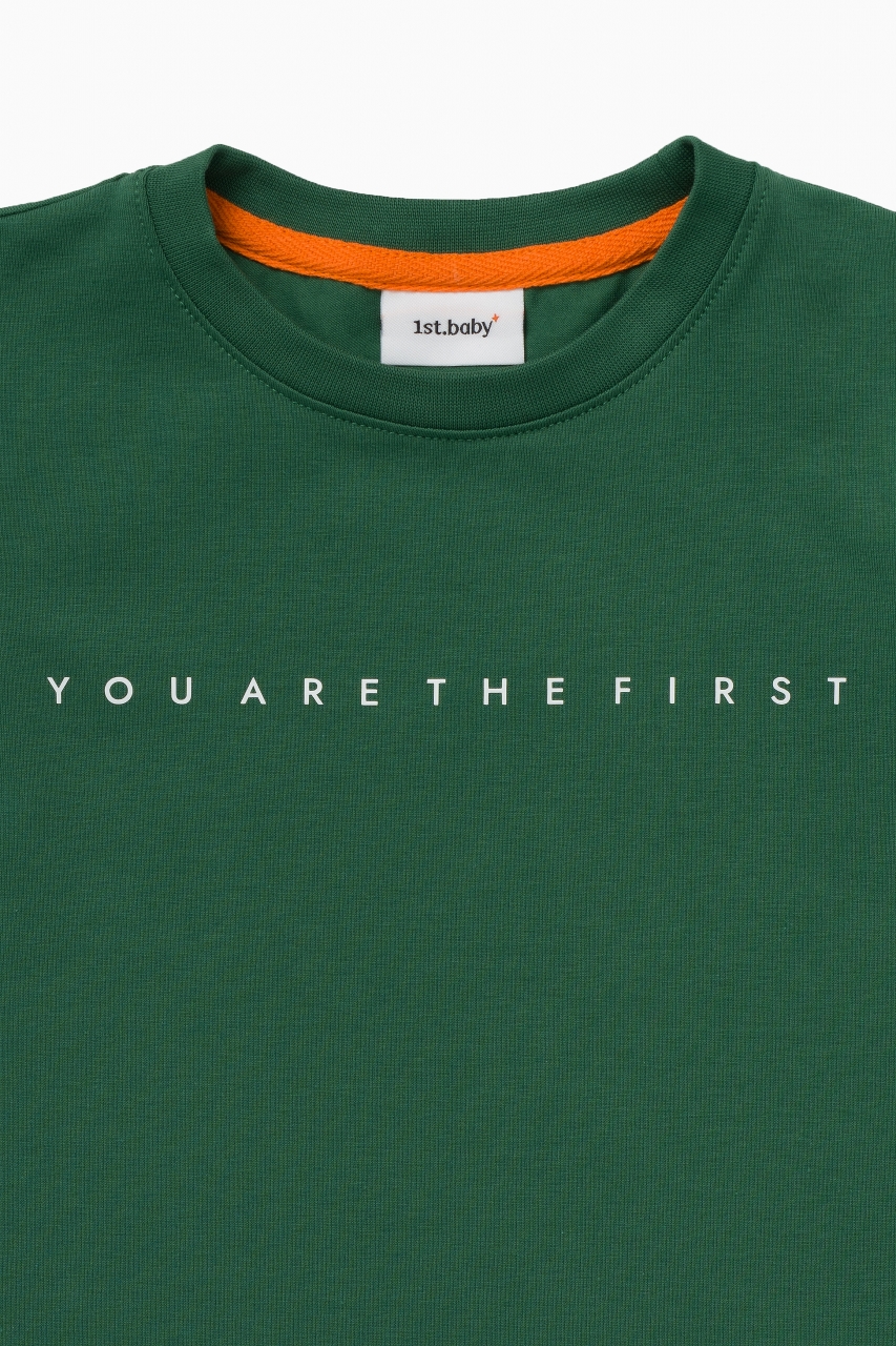 Базовая тёмно-зелёная футболка с надписью “YOU ARE THE FIRST”