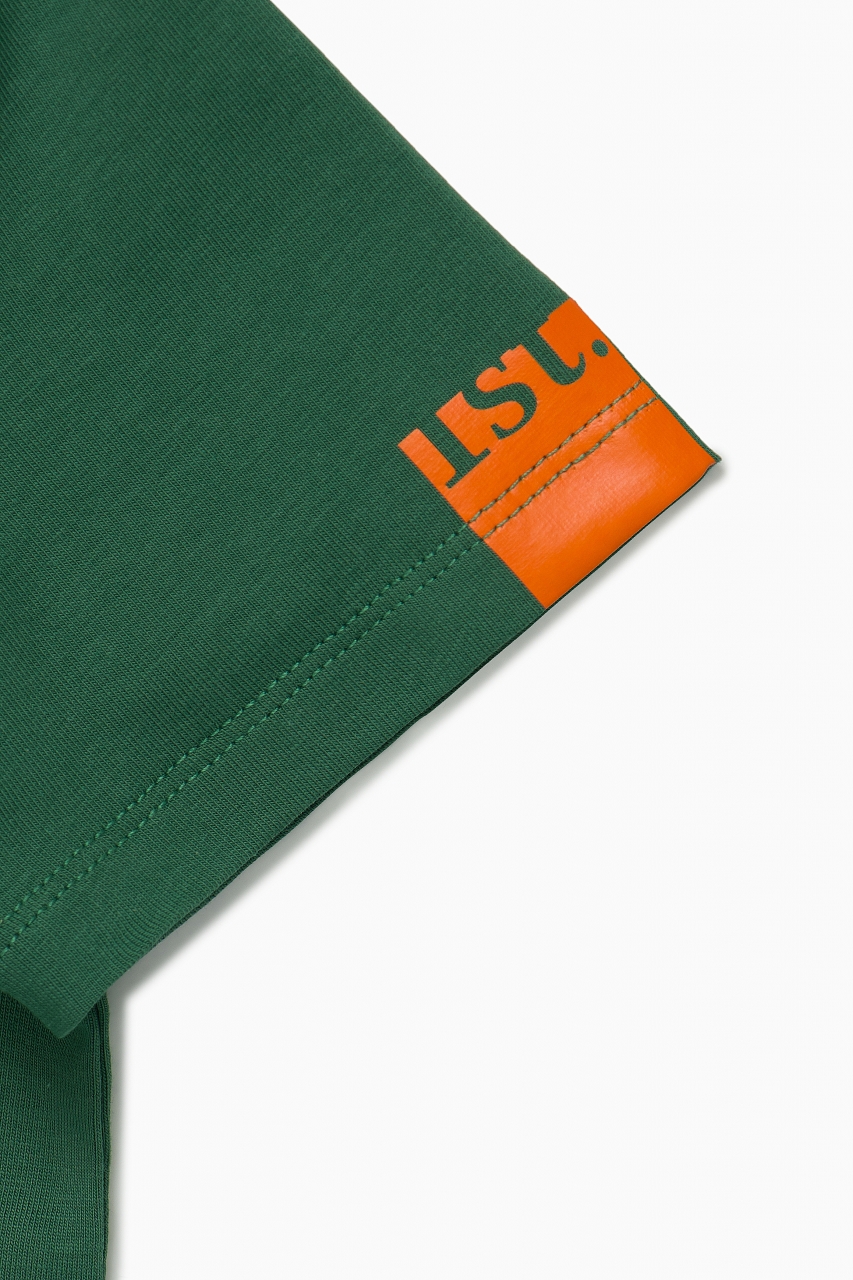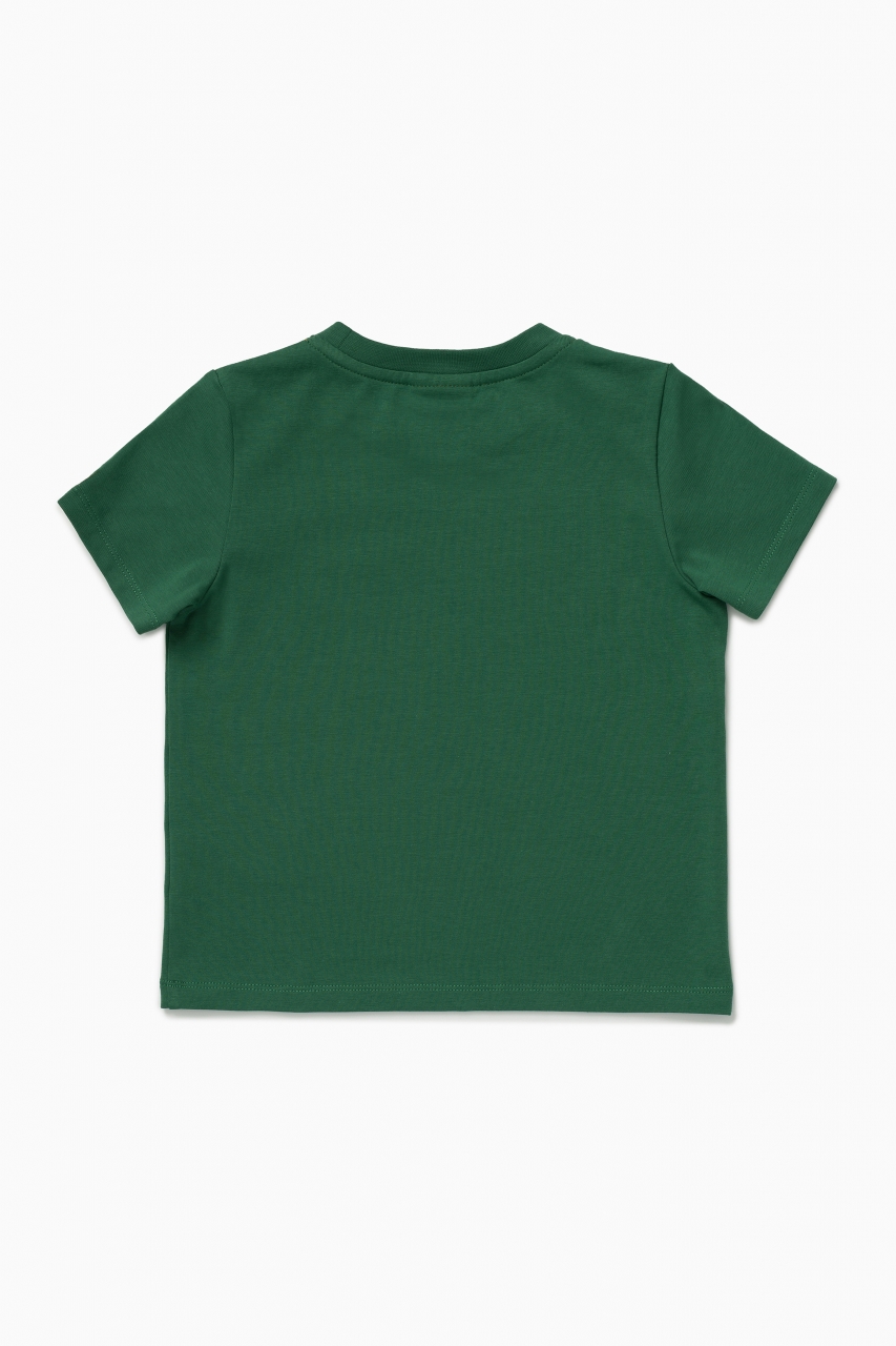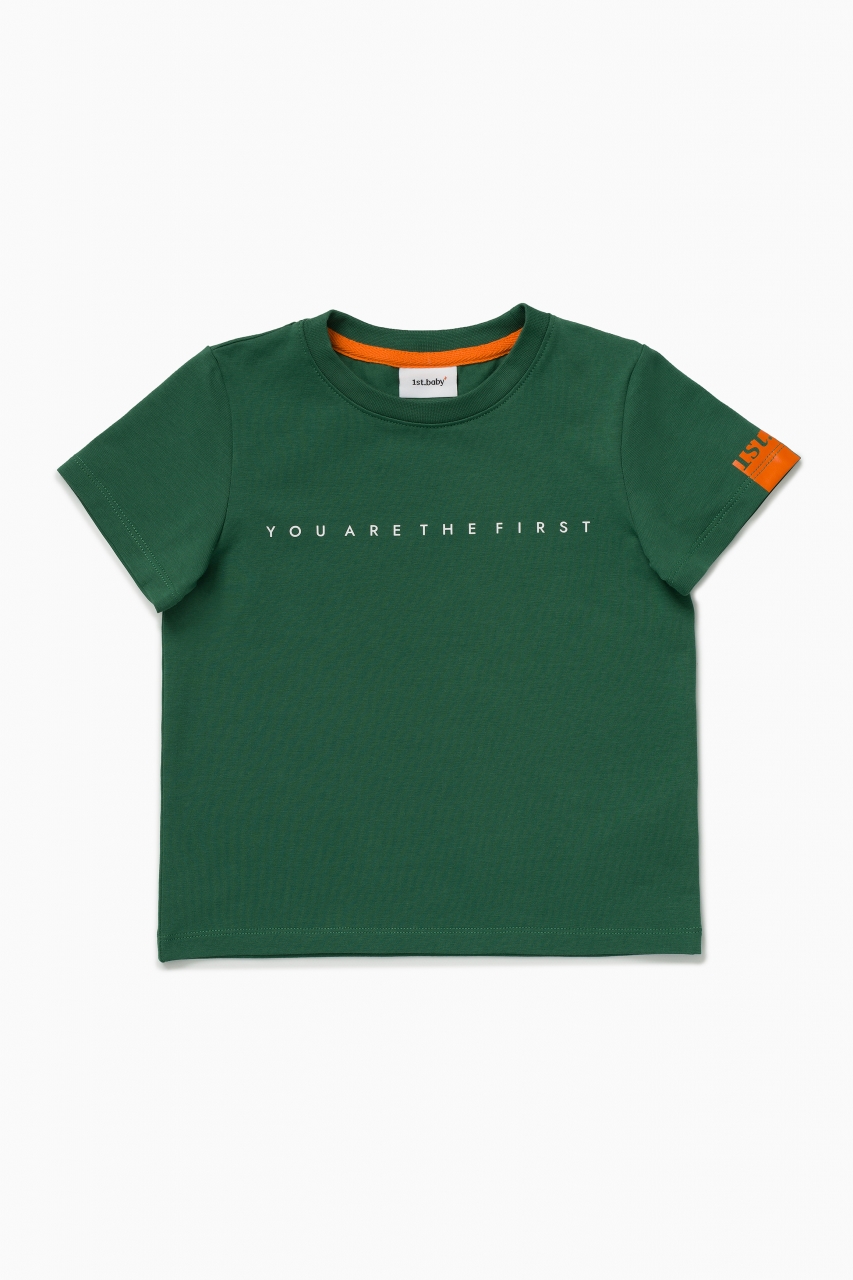 Однотонная базовая футболка в тёмно-зелёном цвете прямого кроя для мальчика и девочки. Выполнена из премиального хлопка с добавлением эластана. Материал идеален в носке, не деформируется. Благодаря эластичной горловине футболку удобно снимать и надевать. На фронтальной части изделия расположен фирменный девиз бренда “YOU ARE THE FIRST”, а на рукаве по центру нанесен логотип бренда “1ST.” оранжевым цветом.