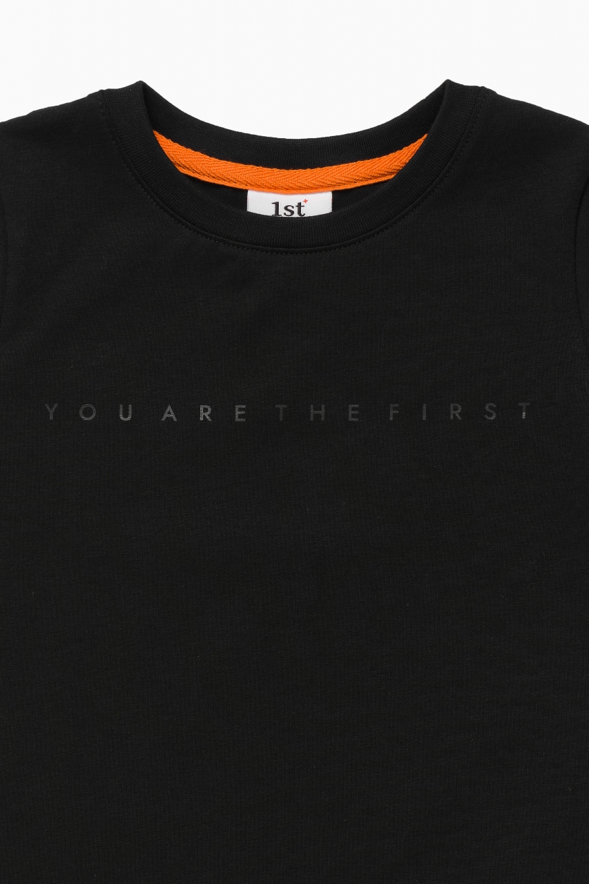Базовая футболка чёрного цвета с надписью “YOU ARE THE FIRST”
