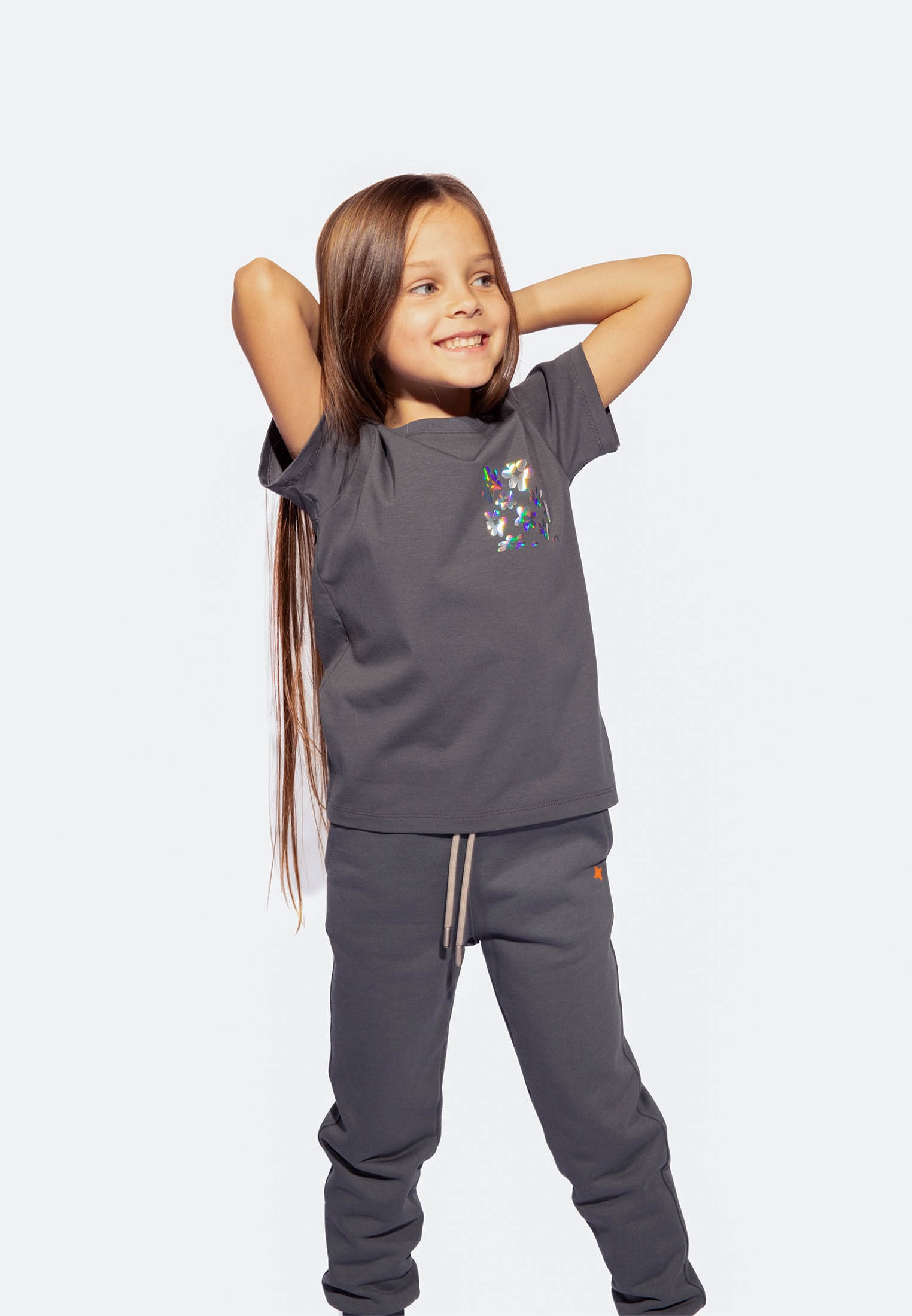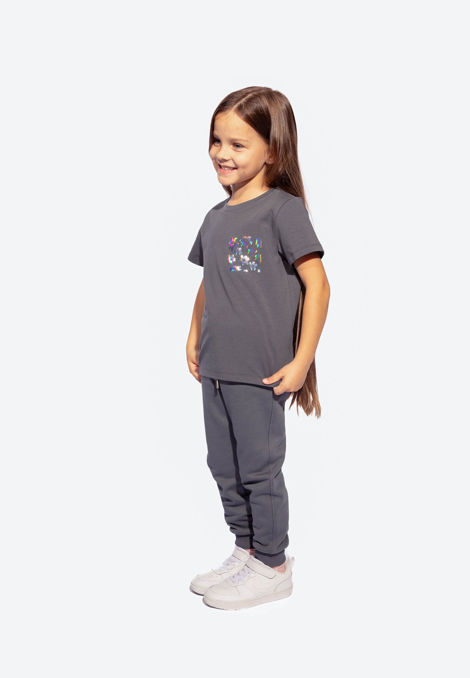 Футболки для детей в цвете графит с голографическими рисунками станут ярким акцентом в гардеробе маленьких героев. Эти футболки идеально подходят для активных детей, сочетая в себе яркость и комфорт.