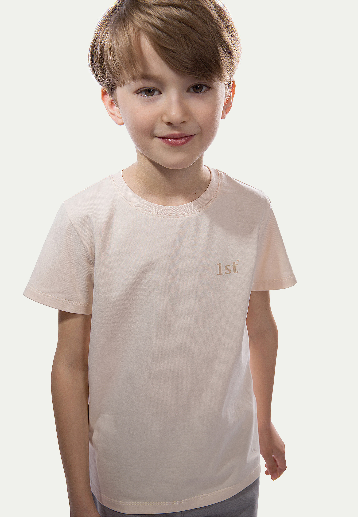 Лаконичная базовая футболка для ценителей минимализма. Проверенное временем лекало, универсальный цвет и легкий акцент в виде логотипа 1st. сделают футболку незаменимой базой для гардероба ребенка.
