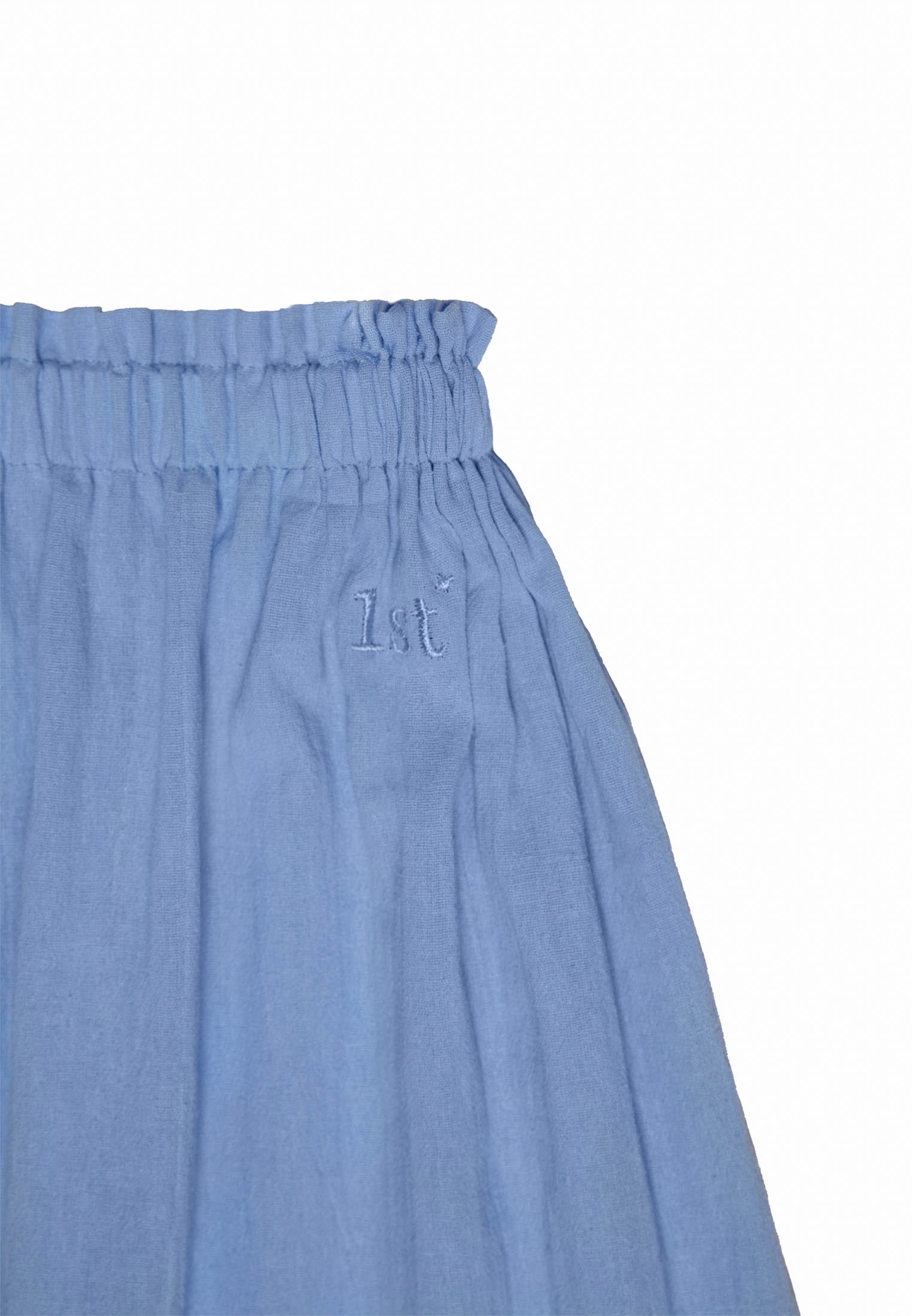Капсула для путешествий дополнена и моделями для девочек. Так что по настроению шорты или кюлоты можно сменить на юбку миди – и вот ты уже главная принцесса пляжа или вечерних танцев. Модель представлена в черном и голубом цветах и дополнена вышивкой 1st. в цвет, имеет сдвоенный размер.